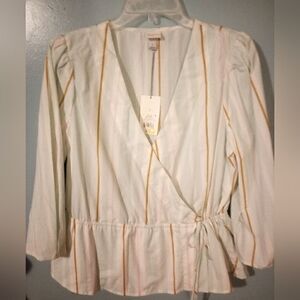 New Day Faux wrap striped top with elastic drawstring waist new, Sz LG