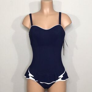 New D-cup Profile by Gottex navy skirted swimsuit. NWT