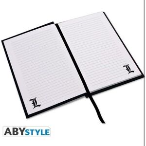 Sleek black and white notebook featuring a bold 'L' design. Ideal for fans.