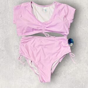 New Decree French Orchid Ruched High Rise Bikini Set Pink Bottom 0X Top 1X