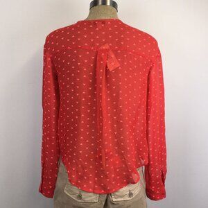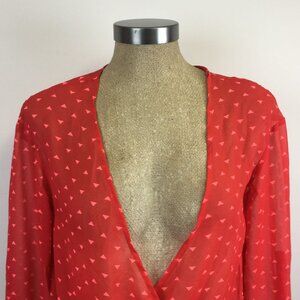 New Decree Red Surplice Front Sheer Blouse Womens Size XS