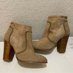 New Dee Keller Tan Suede Mini Fringe Details Ankle Boots Side Zip US 9 EU 39