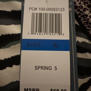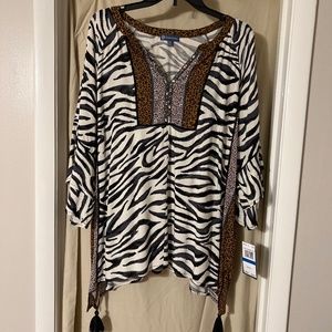 New (with tags attached) Democracy Animal Print Blouse. Blouse. Has Tassels on Each Side and has 3/4 Length Sleeves.