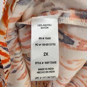 New Democracy Ikat Print Ruffle Collar 3/4 Sleeve Shirt Womens Plus Size 1X