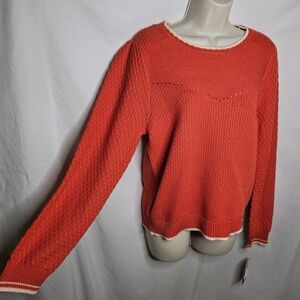 New Democracy Long Puff Sleeve Round Neck Mixed Stitch Sweater Poppy Red Size M