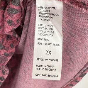 New Democracy V Neck Pick Up Hem Leopard Print Shirt Plus Size 2X Berry Pink