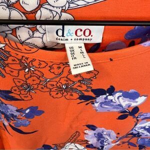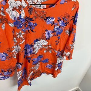 New Denim & Co. Floral Print Round-Neck 3/4-Sleeve Top in Tigerlily | Size M