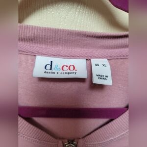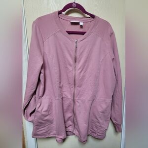Stylish pink zip-up cardigan with a comfortable fit. Perfect for layering. long sleeve, side pockets