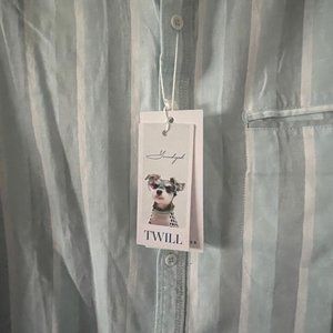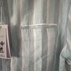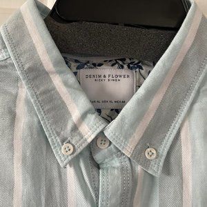 New Denim & Flower Ricky Singh Mint Gray and White Striped Button Down Shirt