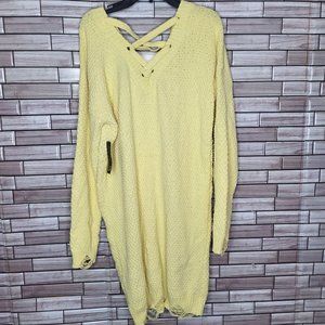 New Derek Heart Women's Medium Yellow Sweater Dress Distressed Knitt Comfy Top
