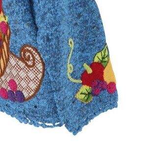 New Design Options Fall Thanksgiving Cornucopia Blue Cardigan Sweater M