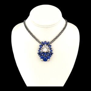 New Designer Statement Necklace Hematite Tone Blue Stones Crystal Accents 4A