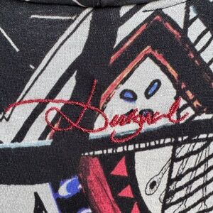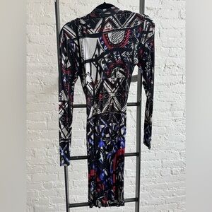 New Desigual Abstract Print L/S Bodycon Dress w Cowl Neck & Long Fringe, Size M