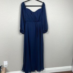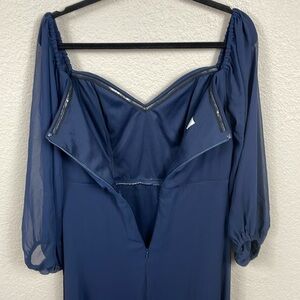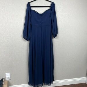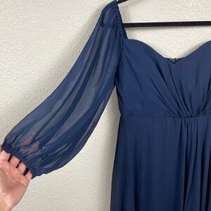 New Dessy Collection Off The Shoulder Puff Sleeve Maxi Dress Front Slit Midnight