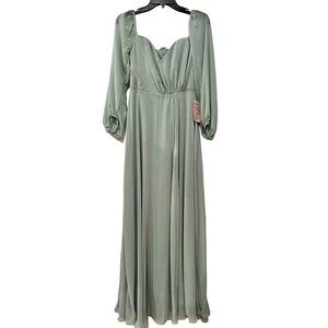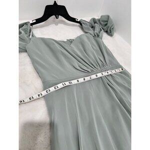 New Dessy Collection Size 2 OFF-THE-SHOULDER PUFF SLEEVE MAXI DRESS willow green
