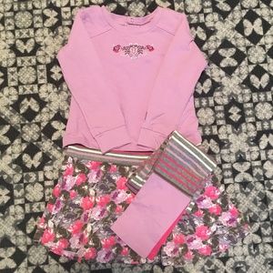 Dress that looks like a shirt and skirt with coordinated leggings. Size 4T. New. The dress has the tag from the boutique attached (torn so price doesn't show). The pants don't have the tag attached.