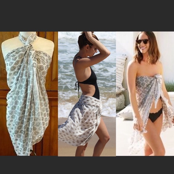 Hat Attack White Neutral Diamond Print Beach Sarong