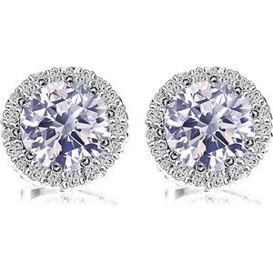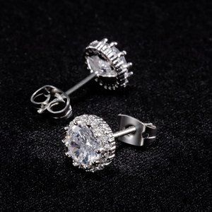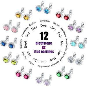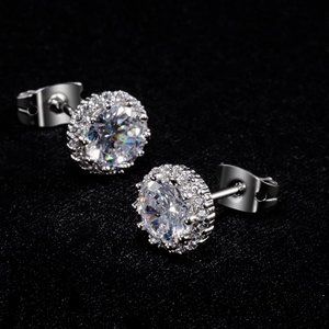 New Diamond/April Birthstone Stud Earrings Set, Copper Plated Cubic Zi…