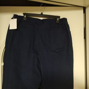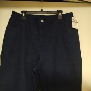 New with tag diane essentials straight leg jeans size women's 16. They are dark blue has elastic on each side of the waist on the back waist is 17 inches across inseam 30 inches.