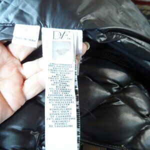 New Diane Von Furstenberg Black Quilted Down Coat w/Faux Fur Trim Hood Size S