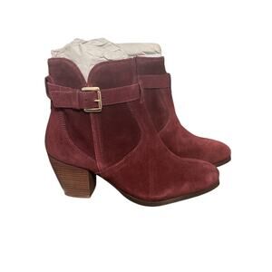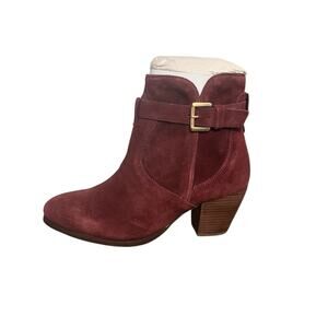 New! Diba Sleek Bootie Boot Women's Burgundy Suede Stacked Heel - Size 7
