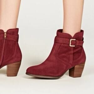 Step up your fall fashion game with these cute Diba Booties. They are in a lovely burgundy leather colorway and feature a gold tone buckle accent.