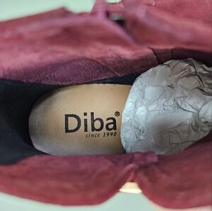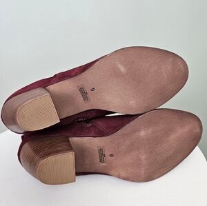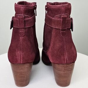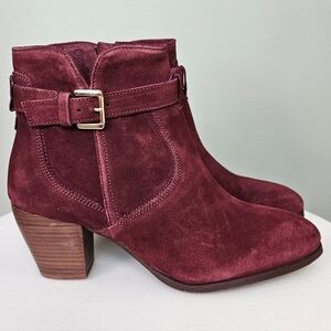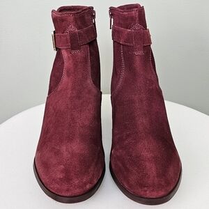 New Diba Sleek Bootie Burgundy Suede Gold Buckle Ankle Women Size 9