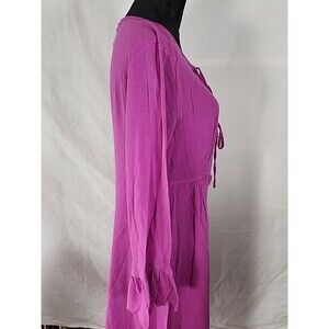 New - Diesel Dampi Dress XL Tie Front Tunic 100% Cotton Purple Boho Flare Wrist