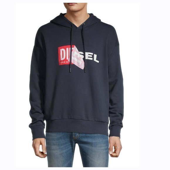 New Diesel Distressed Patch Logo Hoodie Sweaters