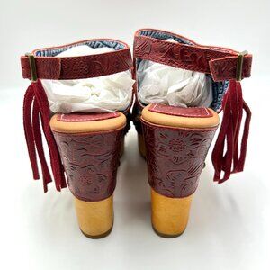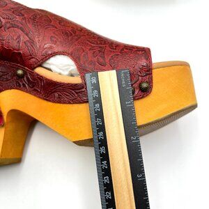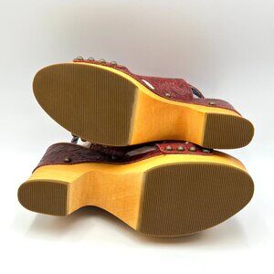 New Dingo Size 9 Tooled Red Leather Western Wedges Platform Clogs Sandals Shoes