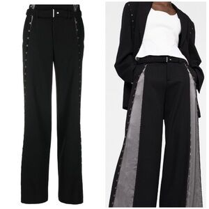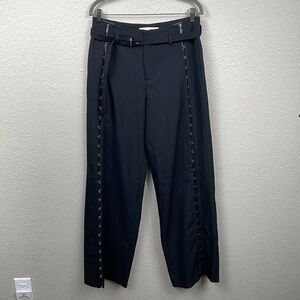 New Dion Lee Hook Detailed Wide Leg Trouser Pants Black Wool Blend Sz 6