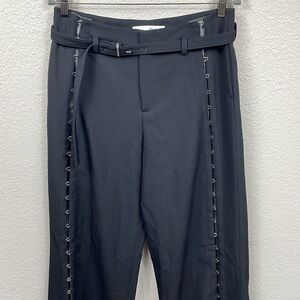 New Dion Lee Hook Detailed Wide Leg Trouser Pants Black Wool Blend Sz 6