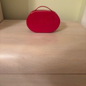 Stunning New Dior Red Collection Cosmetic Pouch & Patent Like Bag 2 Piece Set. This beautiful designer bag has an outside zipper and can be used for your cosmetics or carry it as a nighttime designer clutch. This lovely set also includes a magnificent Dior red patent like bag. This bag features a full outer zipper and handles that you can use as a bag for a night out or a cosmetic bag.
