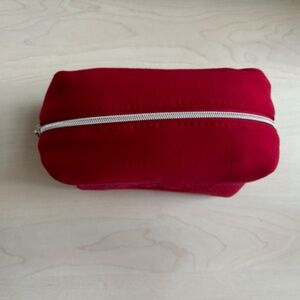 Stunning New Dior Red Cosmetic Pouch. This beautiful designer bag has an outside zipper and can be used for your cosmetics or carry it as a nighttime designer clutch.