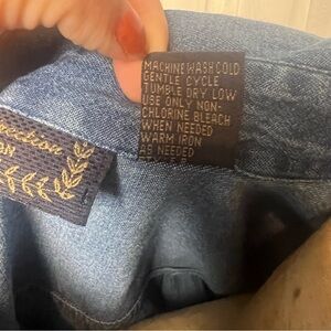 Vintage, New Direction, short sleeve button up denim shirt with sweet giraffes and palm trees appliquéd on, button look like wood. Size 2X