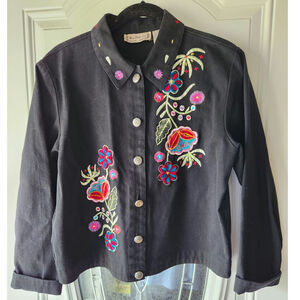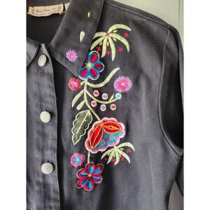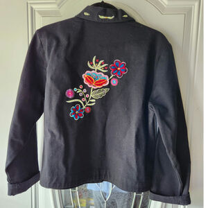 Beautiful Black Jacket with multiple floral embroidery. Great addition to a casual outfit.
