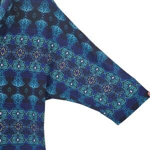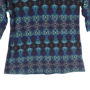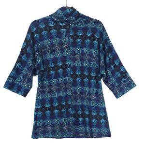Teal Navy Cowl Neck Size M Iso Print Tunic Top NWT Short Sleeve Casual Office Lightweight pullover