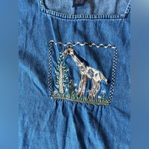 New Direction Denim Dress Womans Petite Medium Giraffe Embroidery Maxi 90s Y2K