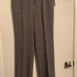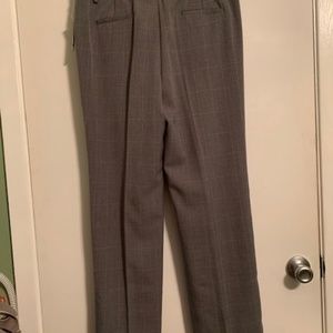 These pants are charcoal gray with very pale pink pin stripes. Fabric content is 63% polyester/33% rayon/4% spandex. They are a size 10 and have a 32” inseam. New condition with no rips tears or stains. Smoke free but pet friendly home.