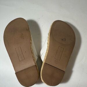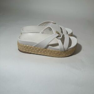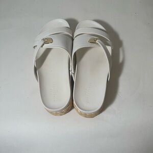 Chic white sandals featuring a stylish gold detail. Ideal for any casual outing.