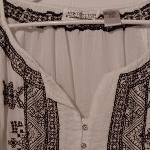 New Direction Embroidered blouse 1X (defect on left sleeve button hole) see pic.