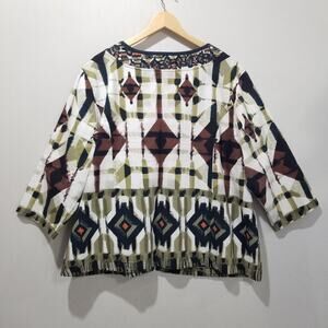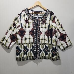 New Direction Jacket Womens 3X Multicolor Aztec Print Cotton 3/4 Sleeve Boho