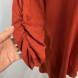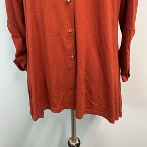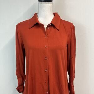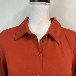 New Direction Snap Front Shirt Tunic size Medium Burnt Orange Jersey Stretch