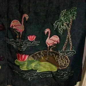 New Direction Vintage Style Denim Button down top with Flamingo Embroidery M, perfect for summer! Non smoking home
