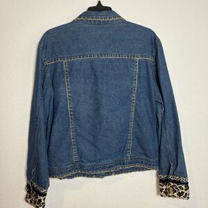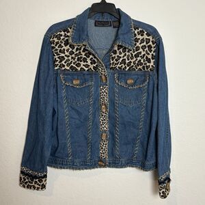 New Direction Womens Denim Jacket Medium Animal Print Artsy Casual Spring