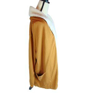 New Direction Women's Open Jacket*Cardigan* Large*Tan shell *Faux Fur Lining EUC