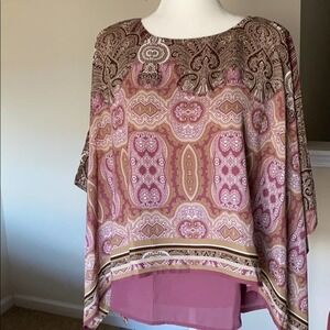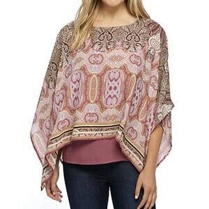 New Direction Women’s Printed Double Layer Kimono Top Size PS