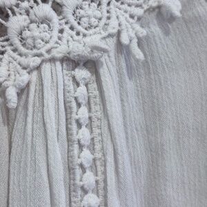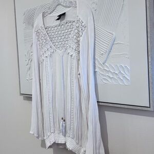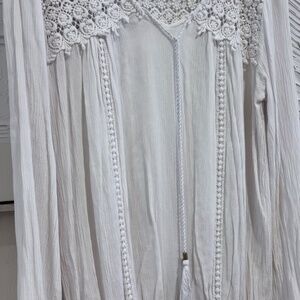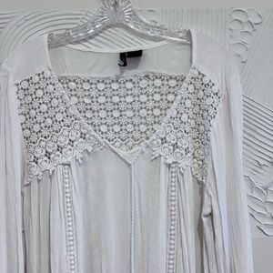 New Direction Women's SZ LWhite Long Sleeve Boho Peasant Top Lace Front Tie