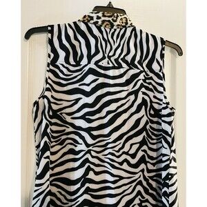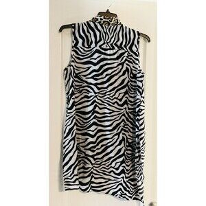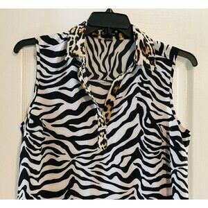 New Direction Women's Sleeveless Printed Woven Blouse Size L, Zip Zebra