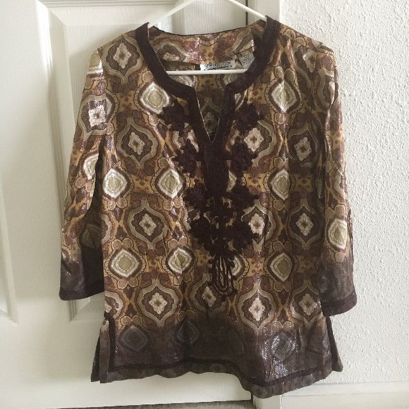 This is a top from the company New Direction. It has a glittery look. In used but good condition.
